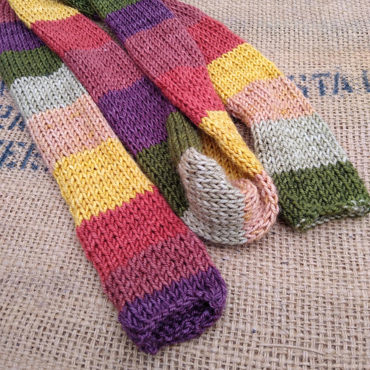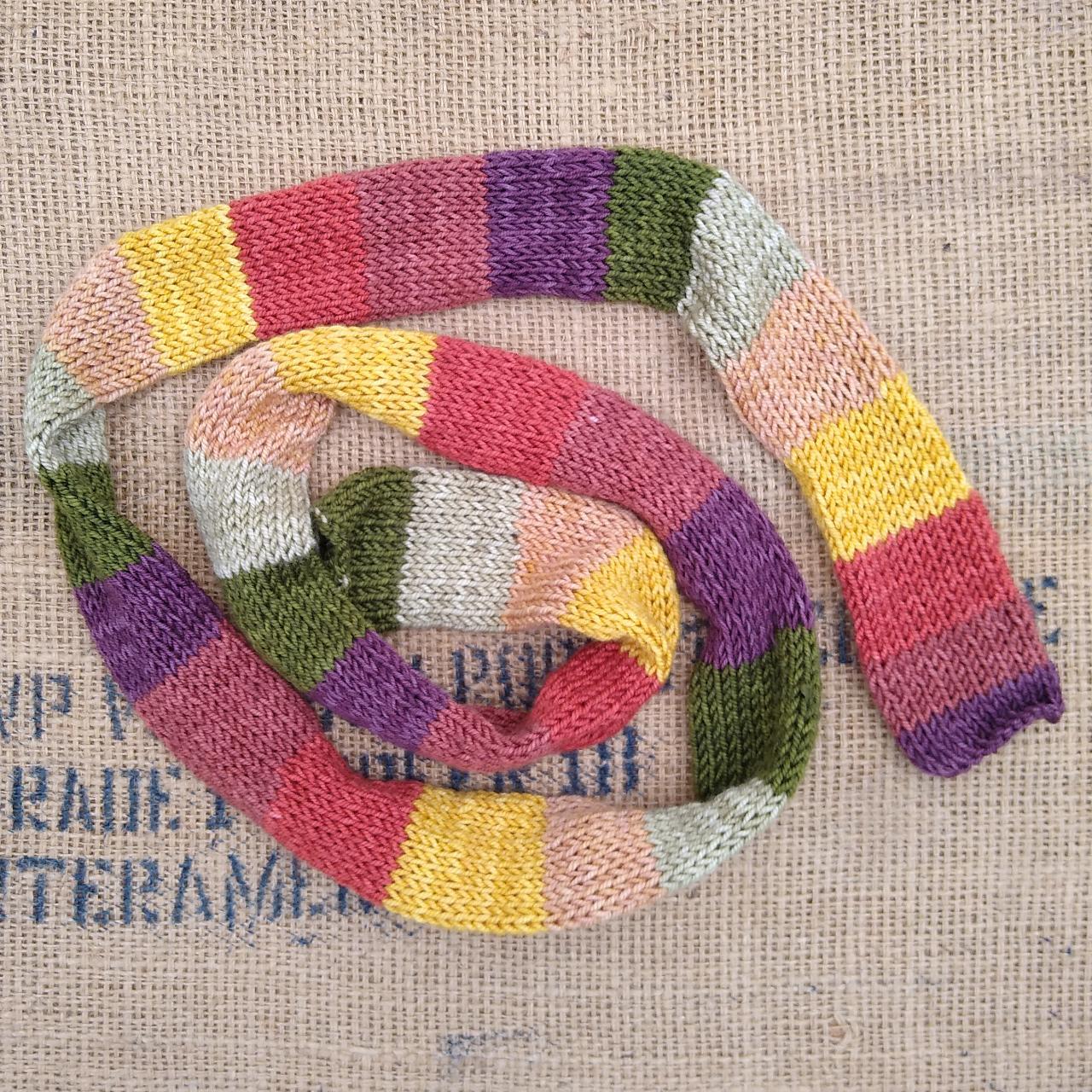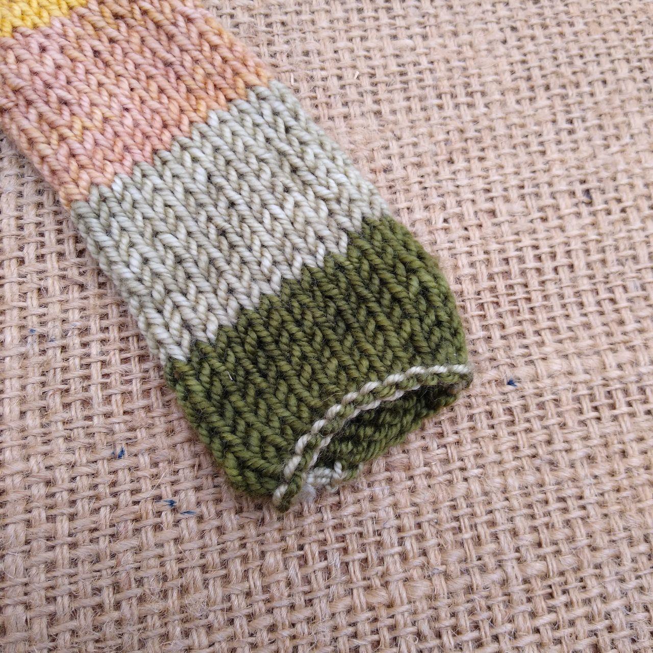 Note that this does not have a "factory" finish – some stripes are uneven, and there is some contrast stitching on the ends of the scarf (see photos).