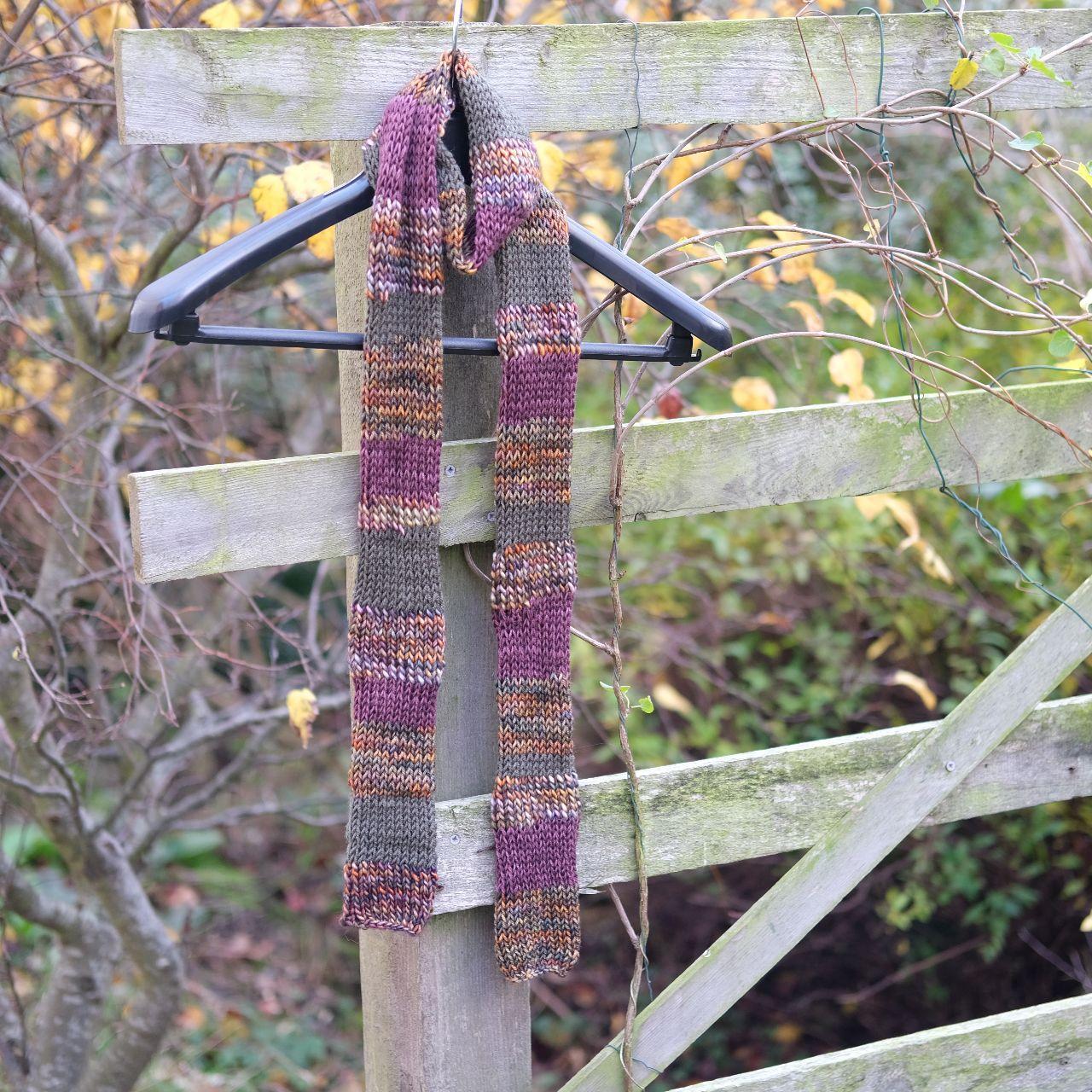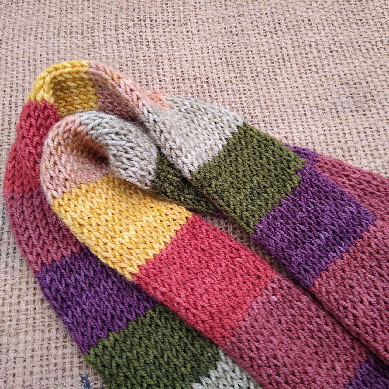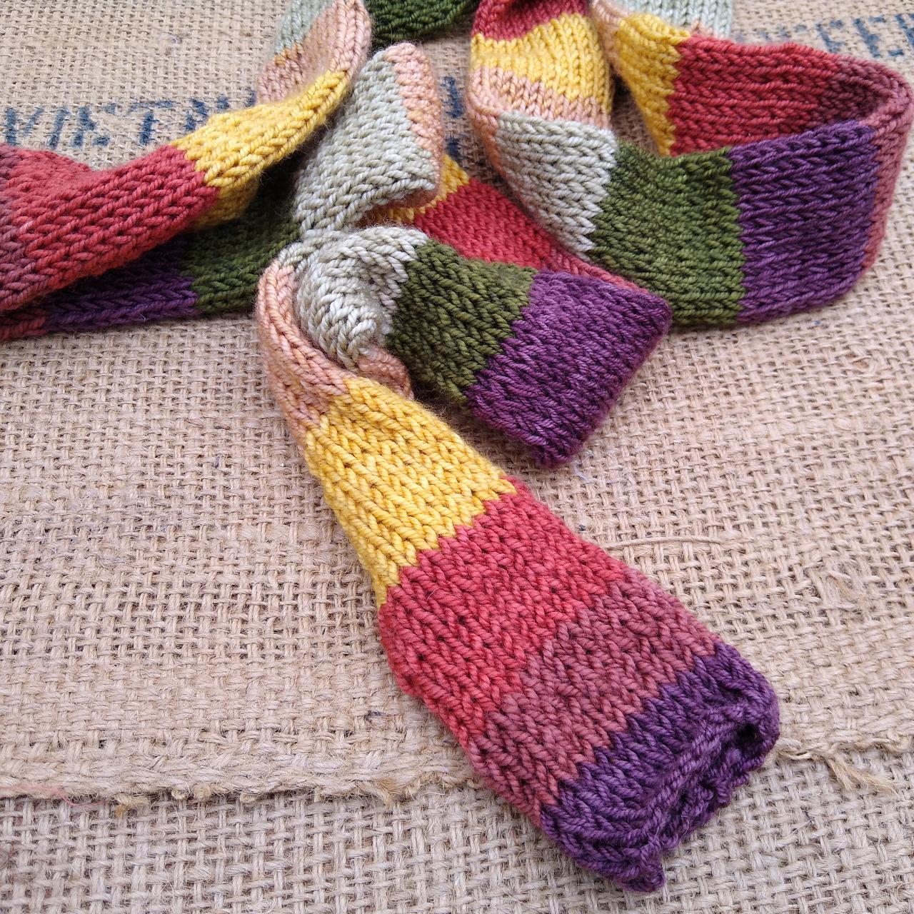 Note that this does not have a "factory" finish – some stripes are uneven, and there is some contrast stitching on the ends of the scarf (see photos).